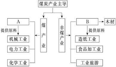 5、综合题 东北地区是我国以机械等部门为主的老工业基地。下表为“东北产业结构变化表”,下图为“东北某城市以煤炭为主导产业的产业结构调整模式图,结合图表回答下列问题。