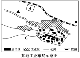 2、综合题 读“某地工业布局示意图”,从环境保护和资源利用角度看该布局都是合理的,分析后完成下列问题。(17分)