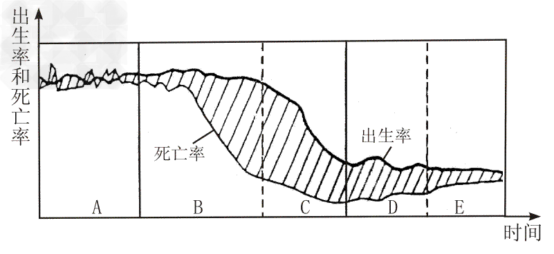 (2)A 、E ;A 阶段自然增长率低是由于死亡率高造成的;E 阶段自然增长率低是由于出生率低造成的
