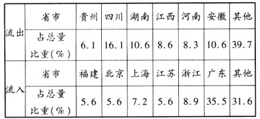 5、单选题 下表是2000年中国跨省人口流动的地区构成表。据表回答1~2题。