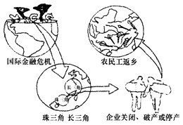 材料二:如图所示,2008年底受国际金融危机影响,我国沿海地区不少工厂企业关闭、破产或停产,形成"百万民工返乡潮"。