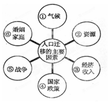 2、单选题 下图为影响人口迁移的主要因素示意图,读图完成下列各题。