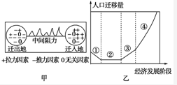 小题1:图甲表示人口迁移的拉力和推力示意图,下列表示推力因素的是