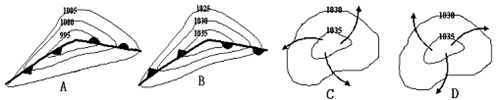 1、单选题 读下边海平面等压线图(A是高压中心,B是低压中心)回答1—3题。
