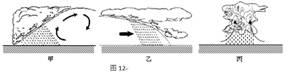 (3)此时,与北京相吻合的天气系统是下图甲、乙、丙中的 ,该天气系统过境时北京可能出现 、降温和 天气,过境后,北京的气温、气压变化状况是 。(5分)