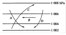 (2)B处的风向为 风,B、C两地相比,风力较大的是 地,判断理由是 。(3分)