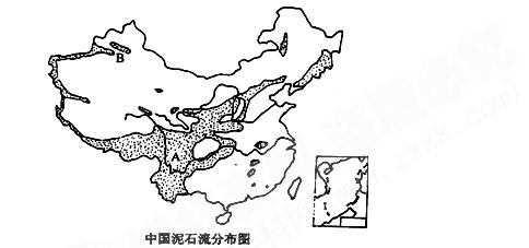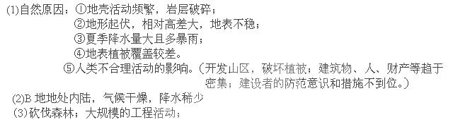 (2)图中B地区泥石流较A地区少,试分析其原因。