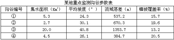 1、根据表中参数推测,发生泥石流可能性较大的沟谷是