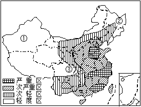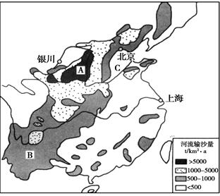 3、综合题 读我国部分区域水土流失状况分布示意图,完成下列问题。(20分)
