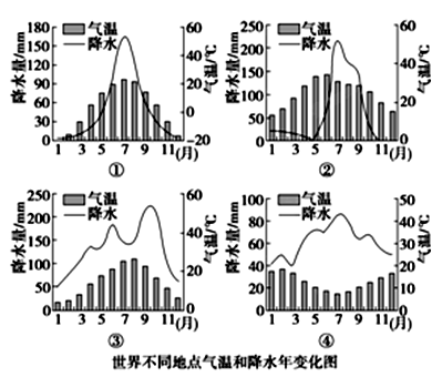【小题2】四地气候类型分布的叙述,正确的是(   )