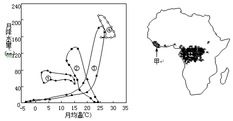 【小题1】从图中可以看出,埃博拉疫情爆发高风险区主要分布在刚果盆地附近,为热带雨林气候区,全年高温多雨,左图中④的气候特点符合热带雨林气候。