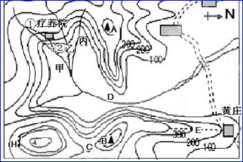 ⑸若将小河甲的水引向疗养院,图中两条规划路线①、②中,比较合理的是 ,原因是 ? 。
