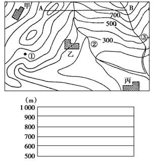 (2)根据绘制地形剖面图的步骤即可绘出。第(3)题,结合地形、河流状况可判断丙处条件优越。
