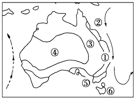 【小题1】根据所学澳大利亚的相关地理知识,图中①是亚热带季风性湿润气候,②是热带雨林气候,③是热带草原气候,④是热带沙漠气候,⑤是地中海气候,⑥是温带海洋性气候。D选项符合题意。