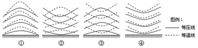 2、单选题 读①、②、③、④四种等压面与等温面示意图(如图),完成问题。