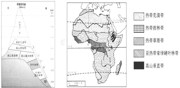 4、综合题 读“珠穆朗玛峰地区垂直自然带示意图”和“非洲自然带分布图”,回答问题。