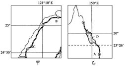 小题2:图乙中D所在阴影区域气候类型为热带雨林气候,其形成原因是