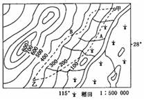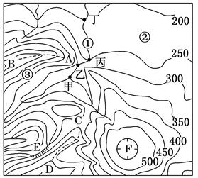 1、单选题  下图为某地区等高线(单位:米)示意图。读图回答题。