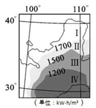 2、单选题  下图是中国局部地区太阳年辐射总量分布图。读图,Ⅰ区太阳年辐射总量比Ⅳ区高,主要因为Ⅰ区(   )