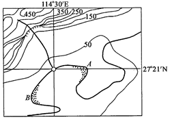 1.图中断崖的最大高差不超过2.河滩A、B之间河段的河流流向大致为