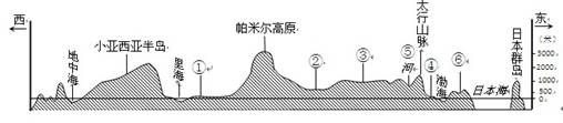点评:本题难度较小,解答本题的关键是掌握沿40°N亚洲地形剖面图附近的地理事物,明确了图中数字的含义,问题就迎刃而解了。
