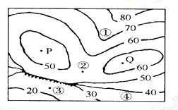【小题1】1地等高线向海拔降低的方向弯曲,“凸低则高”,代表山脊。2处没有位于两个山顶之间,P为山坡上的小凹地,A为山坡上的小高地,故2地不属于鞍部地形。3处并非等高线重合处(陡崖),故3位于陡崖下方的山坡上。4地位于山坡上。故A正确。