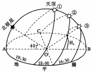 【小题2】根据当地北极星的仰角为40°,只有北半球能看到北极星,说明该地位于北半球。根据北极星仰角确定地理纬度,北极星的仰角为40°,说明当地的地理纬度为40°。所以本题选择C选项。