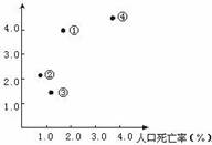 4、单选题 ? 9.图2反映四个国家的人口出生率和死亡率,其中,人口再生产类型属于“过渡型”的国家是( )