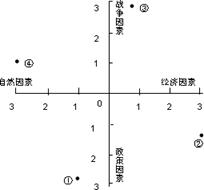 小题2:现代人口由发展中国家迁往发达国家最主要原因应是经济原因。该题也考查读图能力,要能读出②点经济因素为主导因素。故选B。