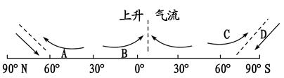 (3)副热带高气压带。C气流较暖而轻,遇到来自高纬度的冷而重的D气流,被迫抬升。