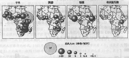 下图为1971~2001年非洲各国受灾人口分布图。读图回答下列问题