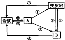 4、综合题 读“某地壳物质循环示意图”,回答下列问题。