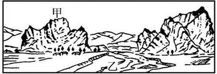 小题1:图中甲处山峰地质构造形成的主要原因是?