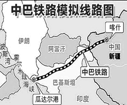 (3)中巴两国计划建一条中巴铁路(如图),指出中巴铁路对我国经济发展的积极意义。(3分)