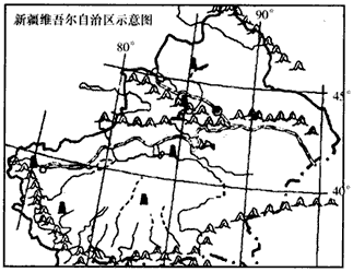2、综合题  读我国新疆维吾尔自治区示意图,回答下列问题。