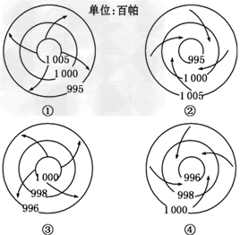 1?.能反映受此次台风影响地区近地面气压分布状况和水平方向上气流状况的示意图是