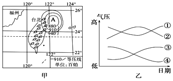【小题2】若A天气系统向西移动经过福州,乙图中四条曲线最能反映福州气压变化过程的是( )