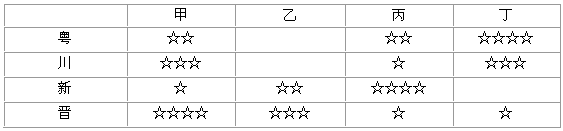 5、单选题 ? 下表代表寒潮、酸雨、水土流失、土地荒漠化对四个省区的危害程度(☆号越多,代表危害的程度越高),据此判断1—2题。