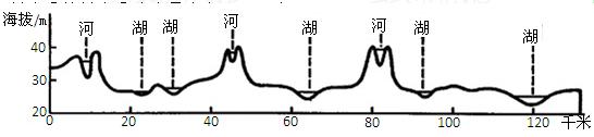 4、单选题 下图示意我国某地形区典型地段的地形剖面。读图,完成17——18题。