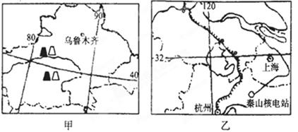 1、综合题 图中的甲图和乙图为我国的两个区域,读图回答有关问题(11分)