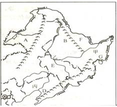 5、综合题 读东北区自然地理环境概况分布图完成下列各题。(7分,每空1分)