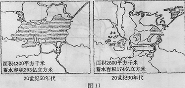 3、单选题 读20世纪50年代到90年代洞庭湖的变化图,回答下题。