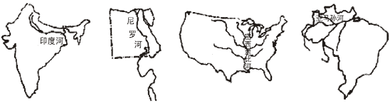 ? 为了揭示世界人口分布的状况,著名学者邦奇(W.Bunge)等创建了人类大陆图。在地图上取消陆地和海洋,仅画出人类密集地区,面积较大的人类密集区称人类大陆。世界上共有四个人类大陆:东亚和东南亚;南亚;欧洲;北美东部。下图为世界人类大陆的一部分。