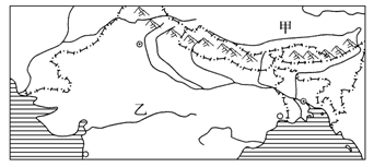 本题解析:本题考查南亚地区。小题1:甲乙两国表示中国和印度;两国边境多位于青藏高原地区,高山阻隔,交通不便,