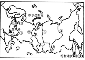 (3)①河流的名称是?????????,与②③④河流相比,突出的不同表现在??????????;图中??????(填代号)为鄂毕河,该河流量较丰富,但航运价值不大,原因是????????