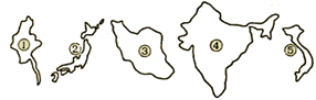1、单选题  比较该图五个亚洲国家,完成问题: