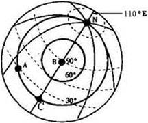 小题2:当太阳光线处在a位置时,国际标准时间是20时,则该地的经度是