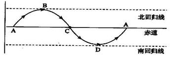 3、单选题 下图示意一年中太阳直射点移动的纬度变化,读图回答下列问题。