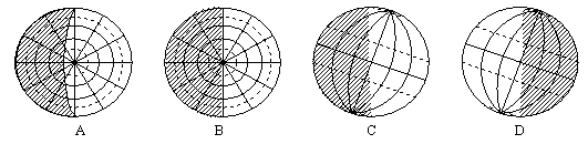 小题3:下列四幅图表示地球到达乙时光照情形的是