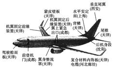 4、单选题  该图是“美国新一代波音737飞机在中国的零部件生产地说明图”。读图回答问题。